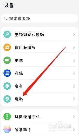 打开手机找到设置,在其中点开隐私。