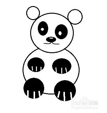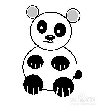 画大熊猫的尾巴,再将大熊猫的耳朵上色,如图所示。