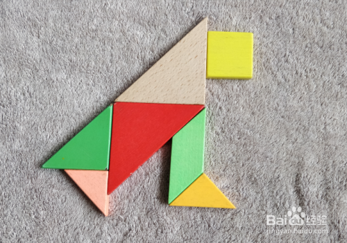 将正方形放在本色三角形的右侧居上挨着摆放,如图所示,作为猴子的头部。