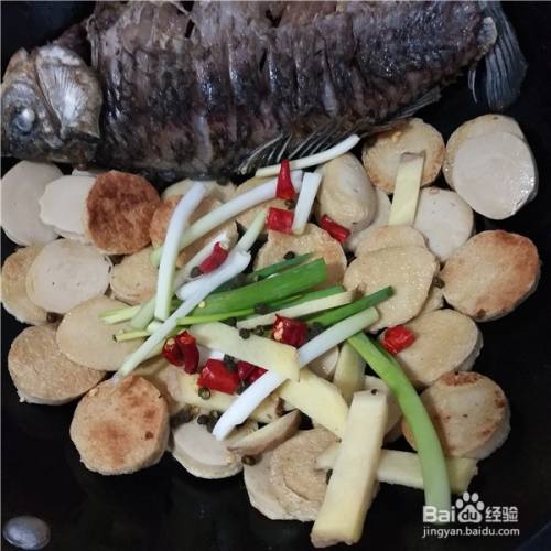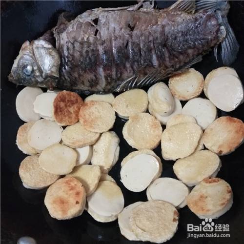 锅中倒入菜油烧热,放入鲫鱼炸至微黄,倒出多余的油。