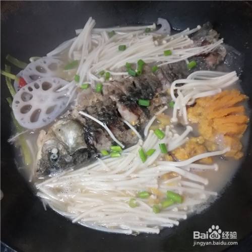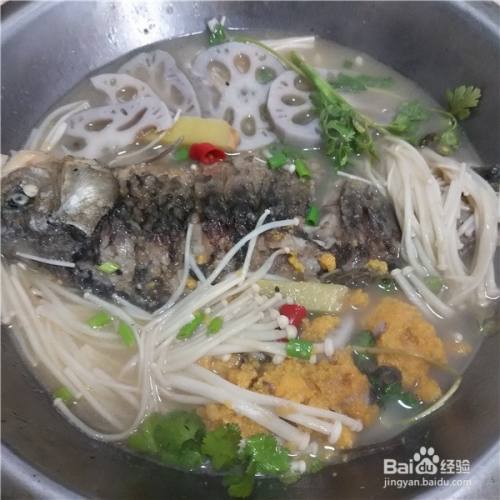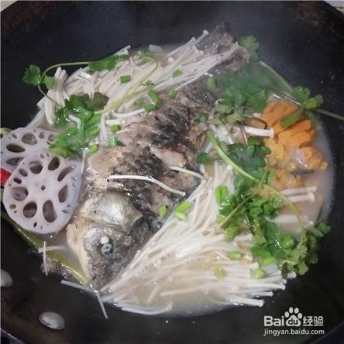 煮到鱼肉软烂,放入金针菇大火煮30秒。