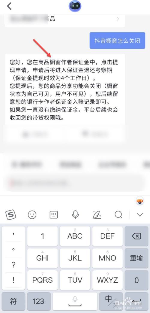 输入问题后,查看到提现保证金后,橱窗功能会关闭。