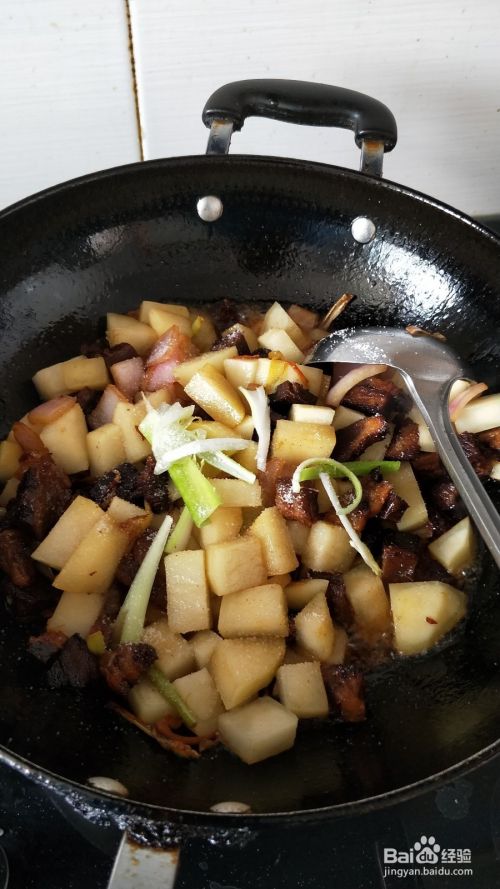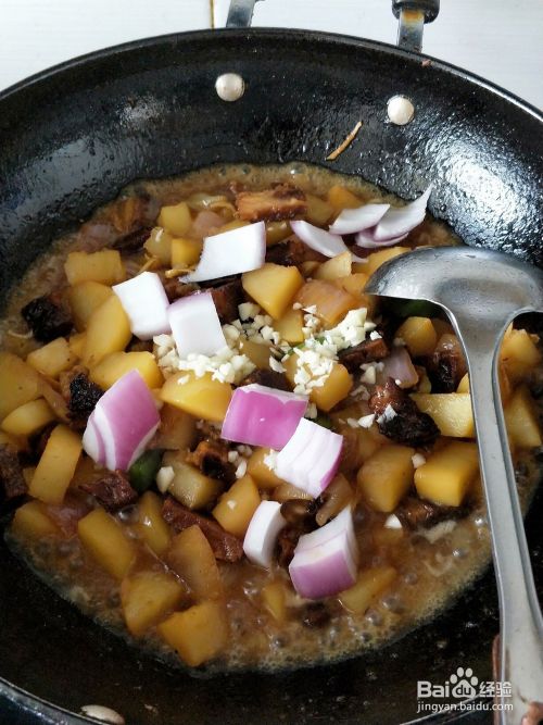 待土豆熟透后,加入洋葱大蒜翻炒,加入适量的生抽调味即可
