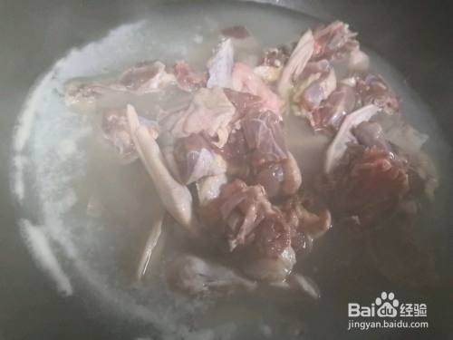 鸭子切块入锅,加入料酒煮至2分钟