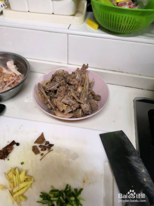 鸭肉切块备用