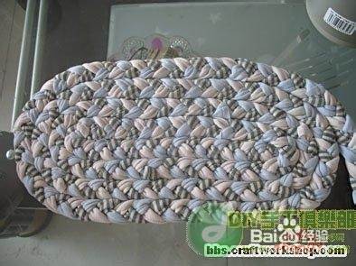 也可以把不穿的旧T恤裁成一指宽的布条,用织棒针的方法,就是最简单的平针,稍微配配色,就能变身一块地垫了,还颇有些宜家风格。家里没有棒针,用筷子也行,一天时间就完工了,还是废物利用呢,节能低碳,挺有成就感的。最好用单色的T,有花纹的编出来反而不是很好看。