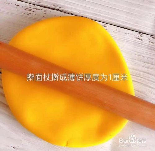 然后用擀面杖擀成厚度为1cm左右的薄饼,如下图所示。