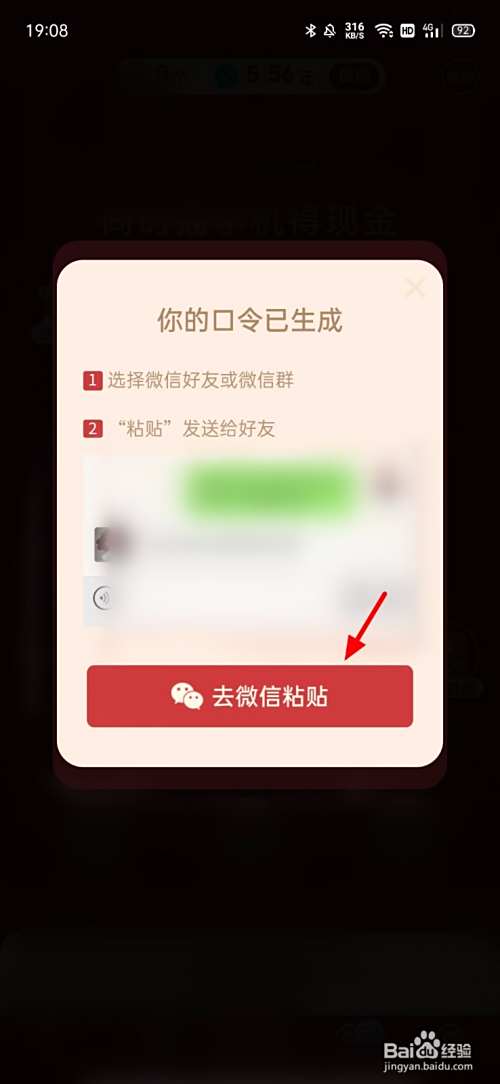 生成口令后,点击 去微信粘贴,这样到微信发个给好友就可以了。