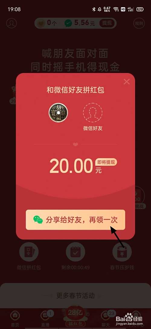 【2】点击 分享给好友,再领一次>去微信粘贴。