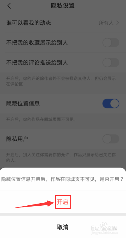 在页面上,我们找到隐藏位置信息,点击一下右边的按钮。