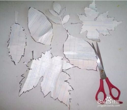 展开10-12英寸的接触纸。将其转到背面,图案和塑料边不可见。在纸上留下一片叶子。用铅笔或黑色精细指示痕迹围绕叶子。把真正的叶子放在一边。选择另一个叶子并重复该过程,直到画出五六张叶子为止。您可以多次重复收藏。至少有三个是大的,有很多分小心切出叶子。将叶子的切口放在一边,并与其他人重复。