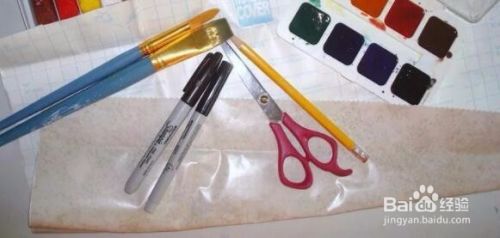 收集其他用品。您还需要一卷塑料自粘搁板纸,图案或颜色不重要。添加剪刀,或其他黑色细线标记,一支铅笔,一盒水彩画和或一个平面的½英寸水彩画全画笔刷。买一张11x14英寸的水彩纸。取出一张纸,并计划在塑料或报纸上覆盖的表面上工作。把纸放在一边。另外,为每个人提供一个水箱。