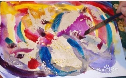 在水彩盒中涂抹油漆。让水浸泡几分钟。或者,将管颜色挤出到白色塑料或 板上并稀释它们将使您的颜色更快。混合您想要的任何颜色的水坑,足以使整个纸张上的笔触。重复使用其他颜色,以防止它们重叠。