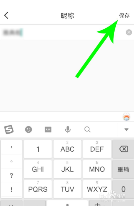 打开修改界面,编辑新昵称,“保存”。如图所示。