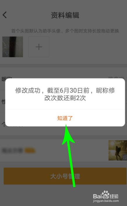 点击“确认”,“知道了”,完成昵称修改。如图所示。