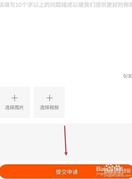 退款申请页面中编辑退款内容,点击下方的提交申请。