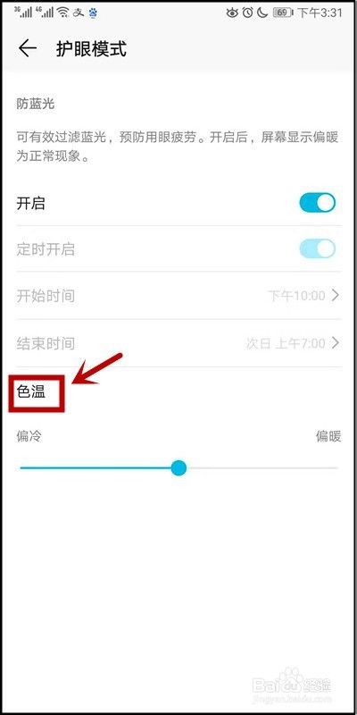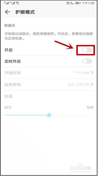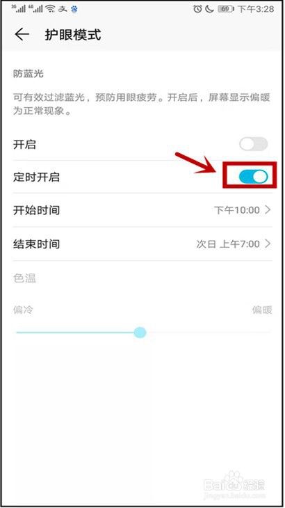 如果定时护眼模式,点击右侧开关按钮→设定时间。
