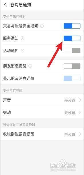 支付宝在哪里开启服务通知?