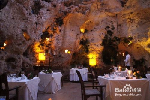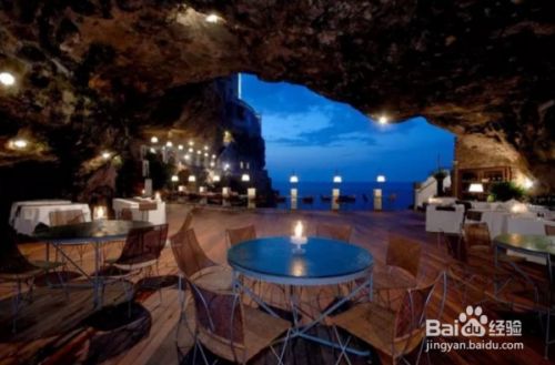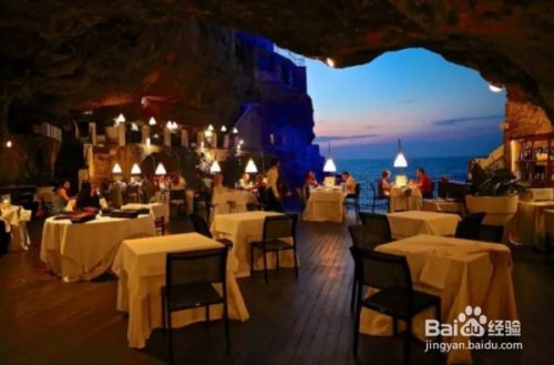 意大利波利尼亚诺有一个叫Grotta Palazzese hotel的餐厅,坐落在海边岩洞里。这个洞穴早在新石器时期就被人类发现并居住,在17世纪这里被改造成酒店,而最大的平台成为酒店的餐厅,在17世纪意大利当地的贵族就会聚集在这里一起开Party!而一直沿袭至今的是高雅的情调,客人烛光晚宴的时候还可以欣赏亚得里亚海的风景,听海浪拍案的声音,也是别有一番洞天。