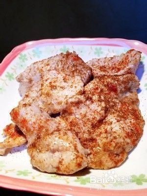 再把肉装入盘中,撒上孜然粉、辣椒粉、椒盐等,看你喜欢什么加什么。忘了加点沙茶粉,加入味更赞。若没有不加也行,味道一样好吃