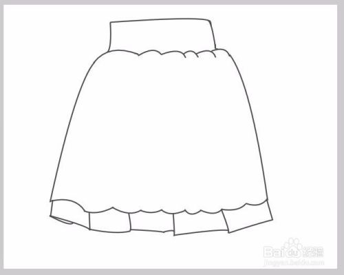 之后,画出裙子的下摆,用波浪的线条的形状画出,第二层下摆则画出圆曲边的方形。