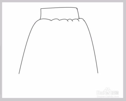 先画出裙子的一个外形,贴近腰部的地方,要画一个裙子的束腰,还有,裙子的上部要画成一个波浪的形状。
