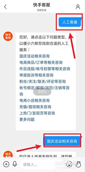 打开快手……更多……快手小店……官方客服……联系客服……输入人工客服即可。