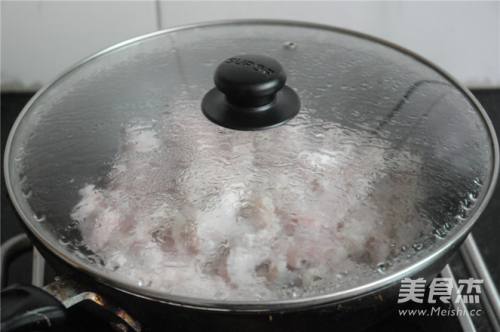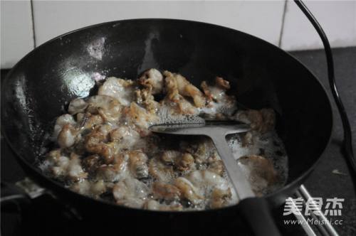 4肥肉中的水份全部挥发后,就可以揭开锅盖,用锅铲将肥肉拨散开