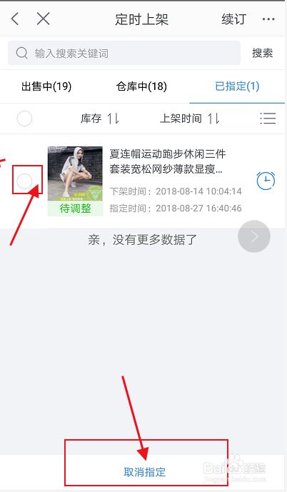 在“已指定”页面,选择想要取消的商品,然后点击页面最下方的“取消指定”即可。