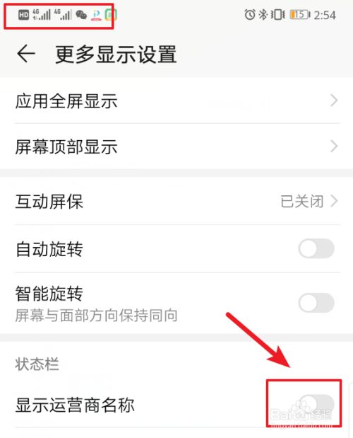 我们通过关闭该选项后方的开关,可以发现顶部的运营商名称就会显示。反之,如果需要打开该显示,就可以在这个位置打开这个开关即可。