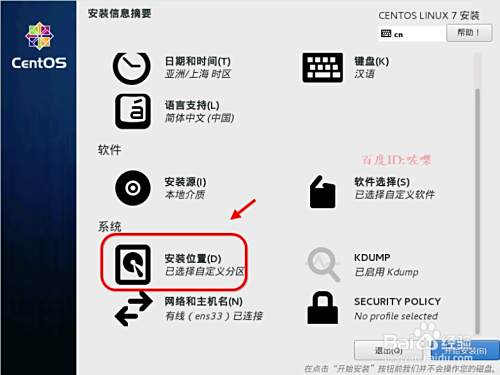 然后出现的cnetos7安装配置页面,点击选择存储位置。