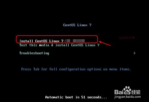 使用centos7光盘镜像启动,进入安装界面。如图选择第一项进入安装