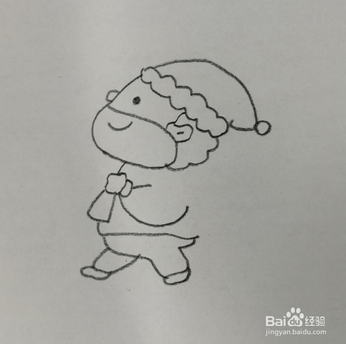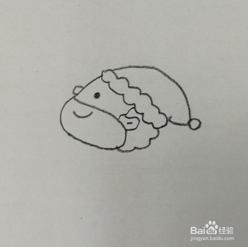 我们先来画圣诞老人的帽子吧,白色的毛茸茸的帽子花边