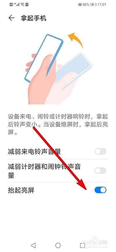 设置开启状态,这样就可以使用拿起亮屏功能。