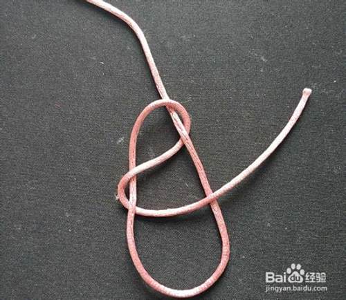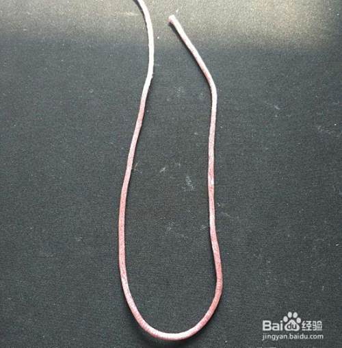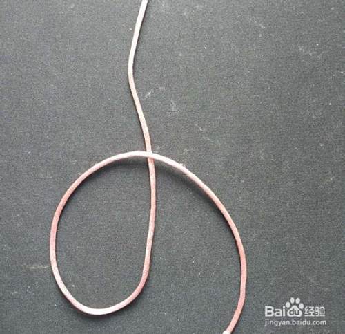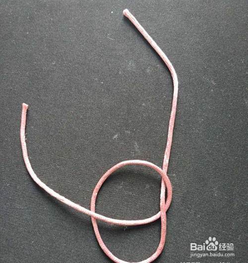 先定线图(凤尾结,又称八字结,作为结常用作尾饰,制作简单,美观大方,是我最喜欢的一种结。正规的凤尾结,即四节左右对称如图所示,只需15厘米的4号线,但为便于生产,应准备不少于25厘米的线)。