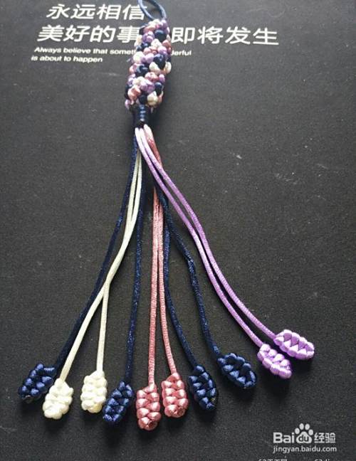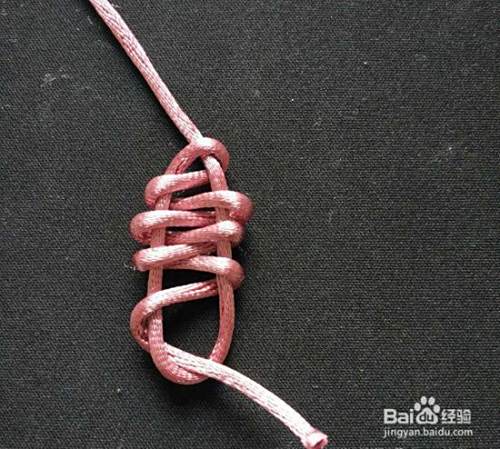 稍微拧紧B端,然后按照缠绕顺序,整理出a端的松紧度,形成凤尾结。多余的线头可以倒转,或者剪掉,然后用打火机烧。