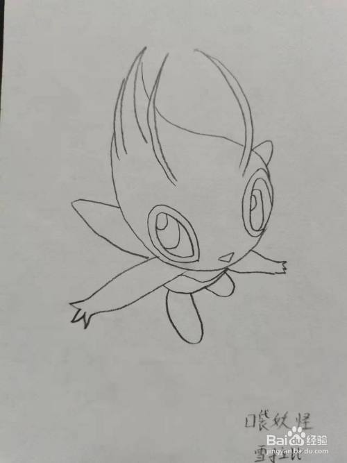 最后,修饰一下雪拉比的身体,雪拉比简笔画,就完成了。