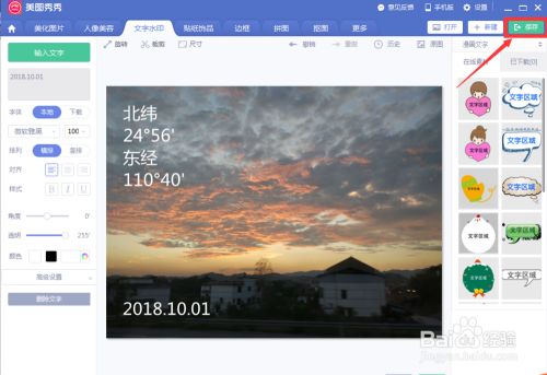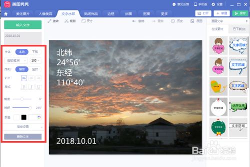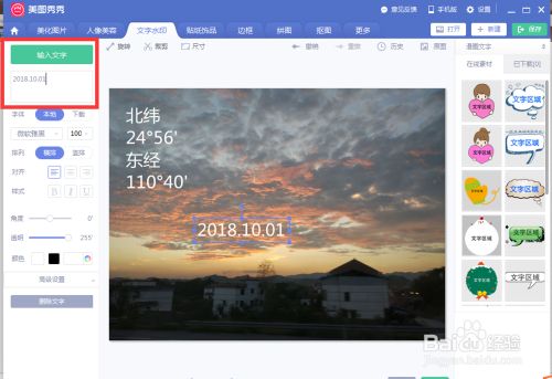 在文字水印界面左边的编辑栏里输入你想输入的日期,然后点击编辑栏上方的输入文字,这时水印会出现在图片中间。