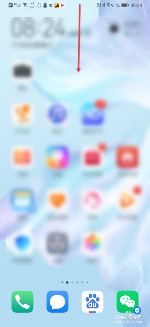 打开手机主屏幕,手指在屏幕上端向下滑动。