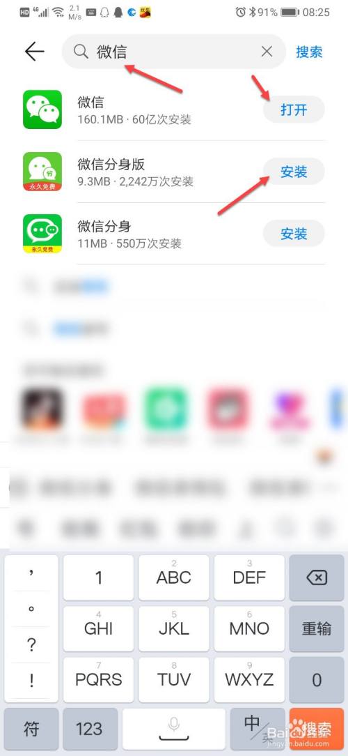 输入APP名称,比如微信,如若手机上有该APP,可直接点击打开,如若没有该APP,可点击安装。