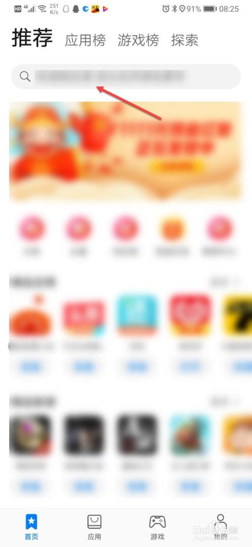 在应用市场主界面,点击搜索框。