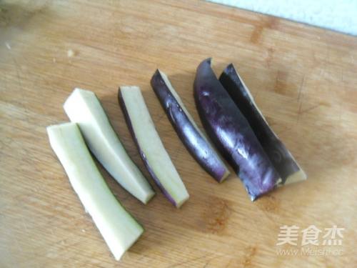 5在蒸制茄子的空档,猪肉切粒、葱姜蒜切粒