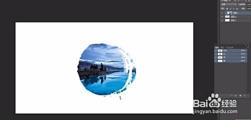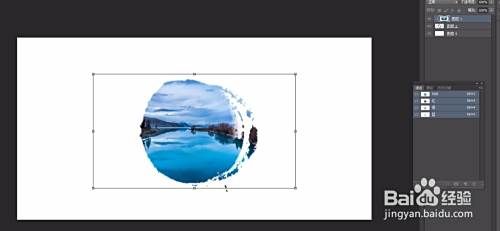 更改图层顺序,让照片的图层在上,素材图层在下面一个图层。然后执行剪贴蒙版。这样我们的照片就以这种水墨的形式出现了。我们可以调节水墨素材的大小比例。以最佳大小为准。