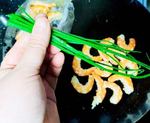 816分钟以后打开锅盖,将虾仁放入中间排好,继续蒸2分钟左右,看看蛋液成形没有流动就是可以了。我是直接在窗台外面的花盆里煎了几根小葱叶洗净切碎备用。