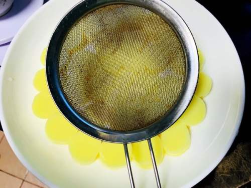 5将打好的蛋液用网筛过滤一下。