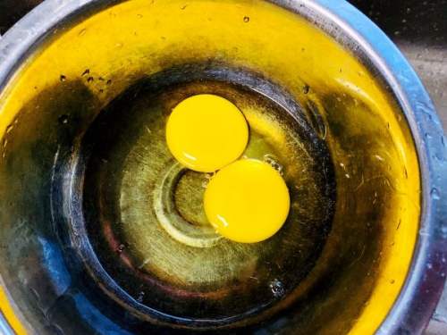 3鸡蛋两个打入碗里。