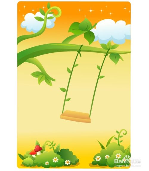 在晴朗的天空下荡秋千是一种无比惬意的场景,今天,我们就来画一画秋千场景画,从中学习一下天空、绿藤、秋千、草地花朵等多种元素的画法,体会绿色与橙色的搭配效果。