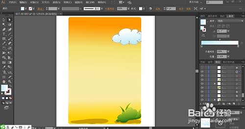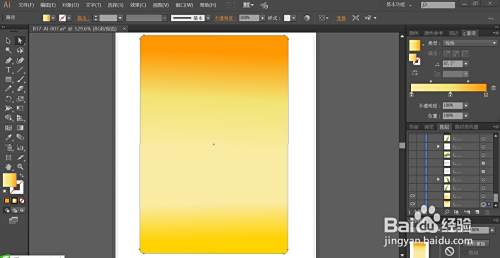 使用橙黄色的渐变填充天空背景,再用淡黄色的渐变填充背景的下方路径。