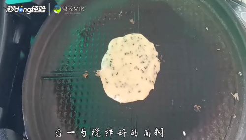 8电饼铛预热倒入一勺面糊。