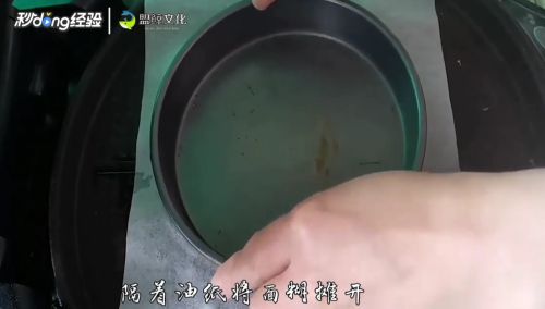 10放一个盘子隔着油纸将面糊摊开。